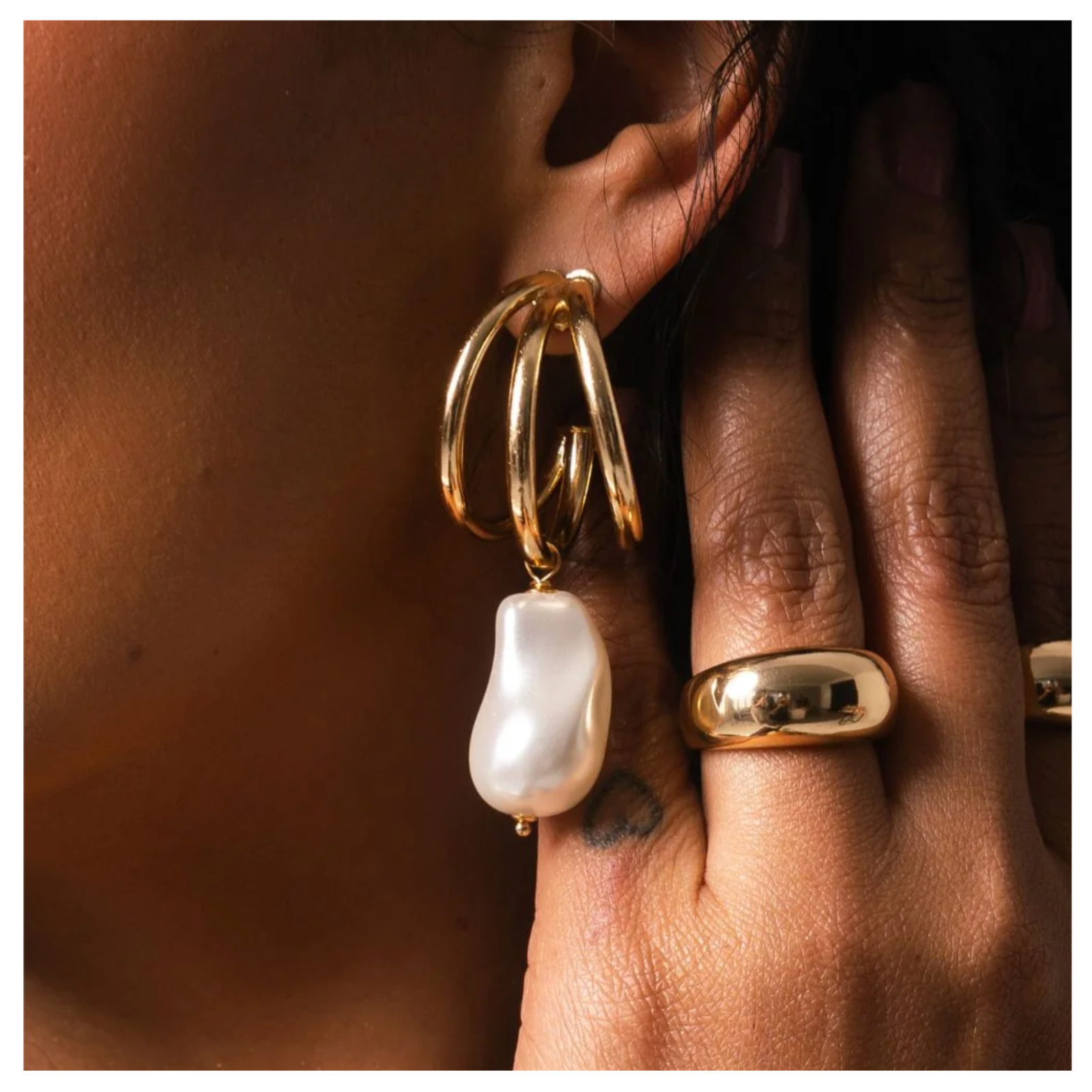 Seu design em argola maxi com pingente de pérola une o charme atemporal das pérolas à ousadia de uma peça moderna e marcante.